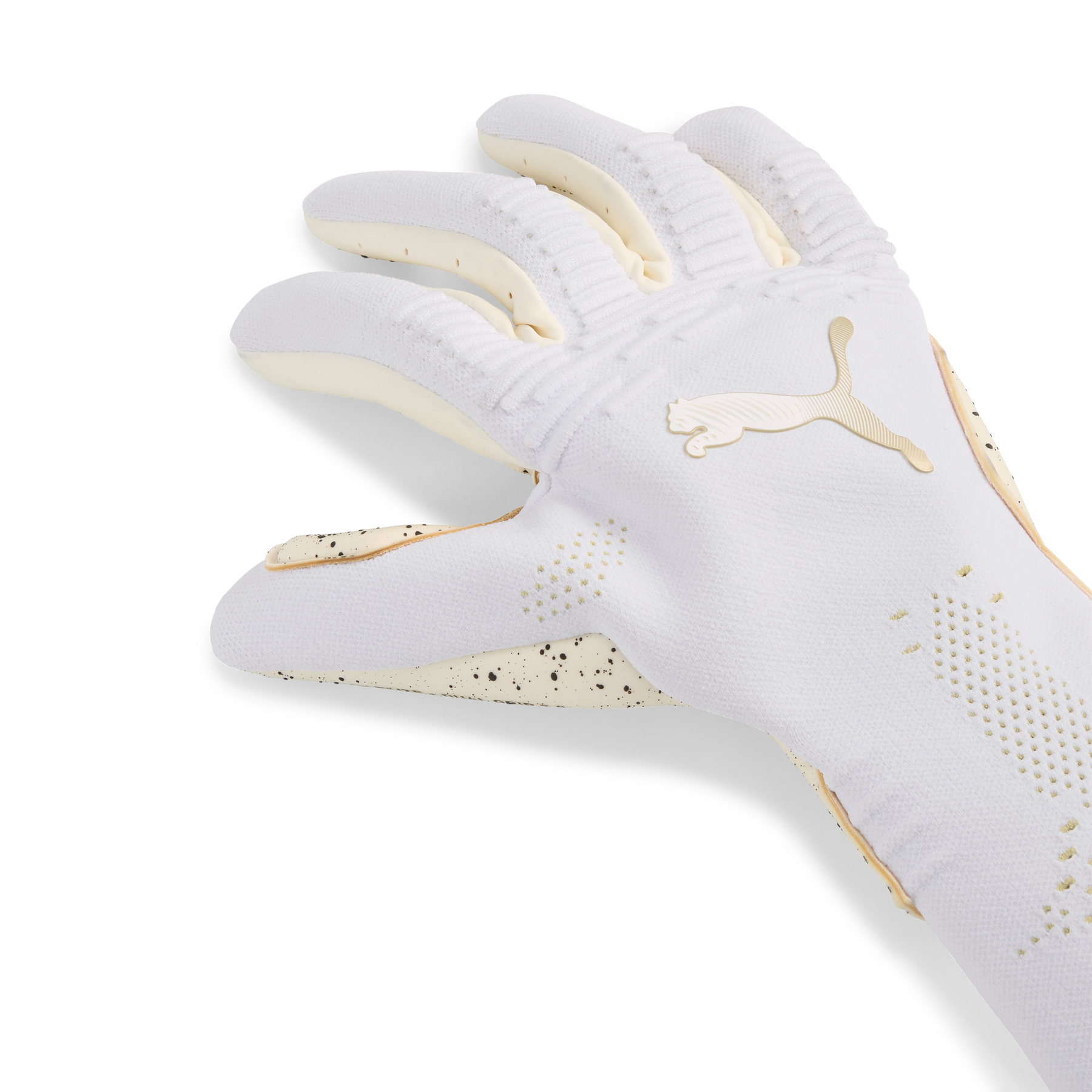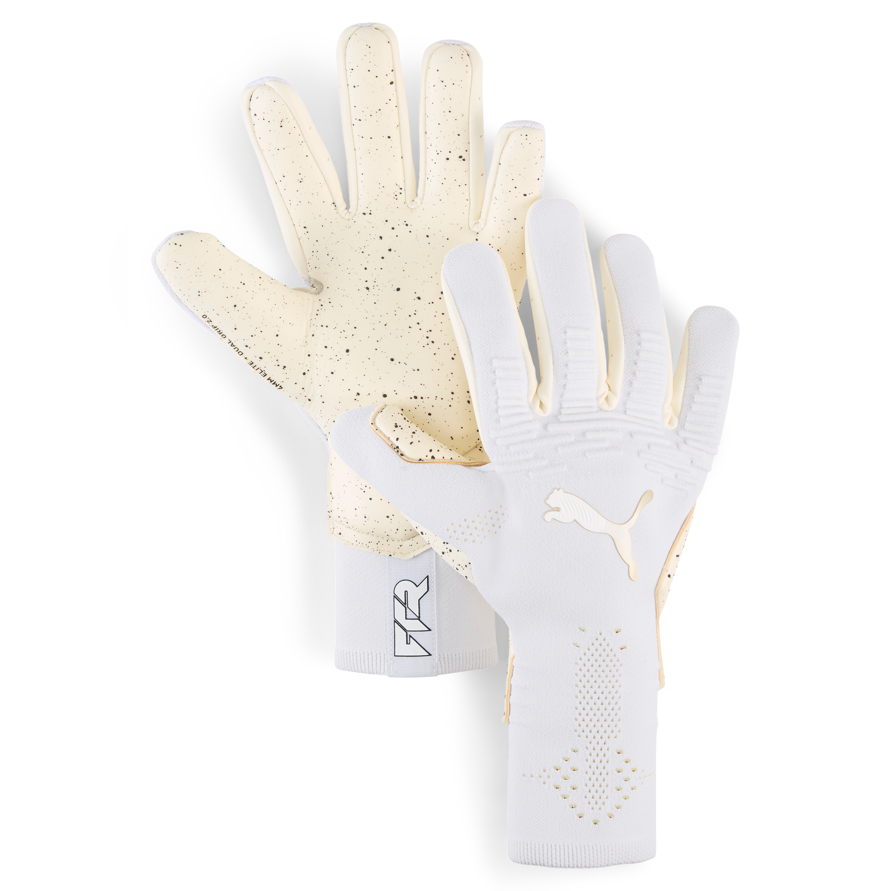 Unleash your inner soccer goalkeeper with PUMA's latest gloves. Featuring 4mm ELITE+ DUAL GRIP 2.0 palm latex, a knitted backhand, and latex finger gussets, these gloves offer unparalleled grip, fit, and control. Get ready to own the goal.
